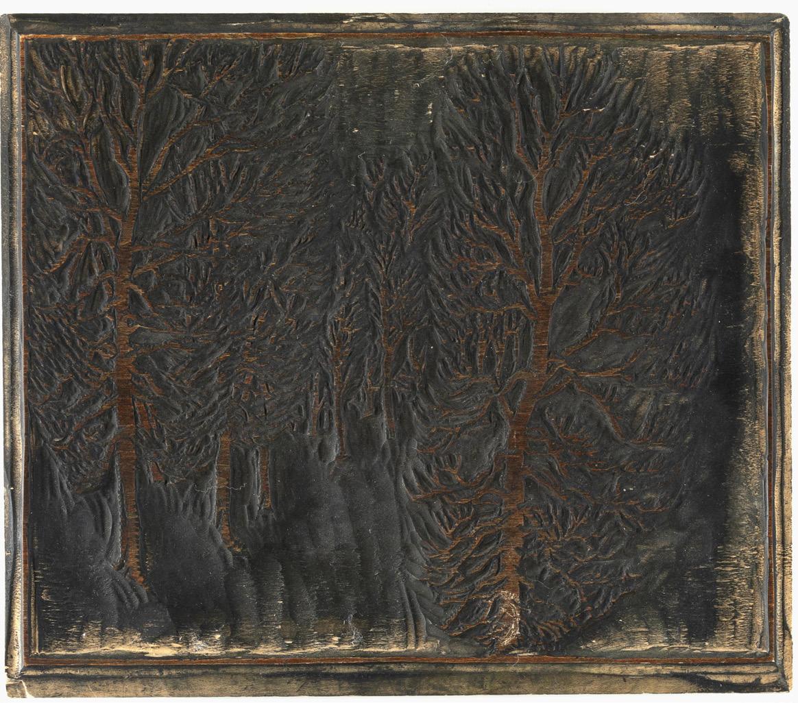 drypoint, aquatint, edition 22 of 50 titled and editioned lower left: Christmas Eve Fires 22/50 signed lower right: Gene KLoss Imp 12 x 17 3/4 in. (30.5 x 45.1 cm.)