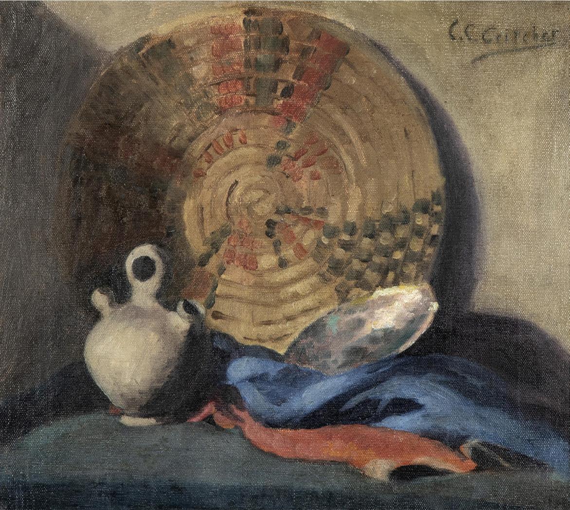 Among the great jewels in Greg Nelson’s Collection were Gene Kloss’ original sketchbooks, and scores of loose-leaf sketches, directly from her estate, many of which he had meticulously framed. Gene’s husband Phillips Kloss wrote that she always sketched “direct, never resorts to photographs or trick contrivances… believing that rhythm, design, consonances, modulations are intrinsic to all art of all ages.” Gene also observed the pueblos’ general prohibitions against photography or sketching during ceremonial rituals, relying instead on her keen visual memory. The sketches offered throughout today’s sale are also a testament to her extraordinary natural skills with line, composition and chiaroscuro that underly the power of the more than 600 prints she produced in her lifetime.