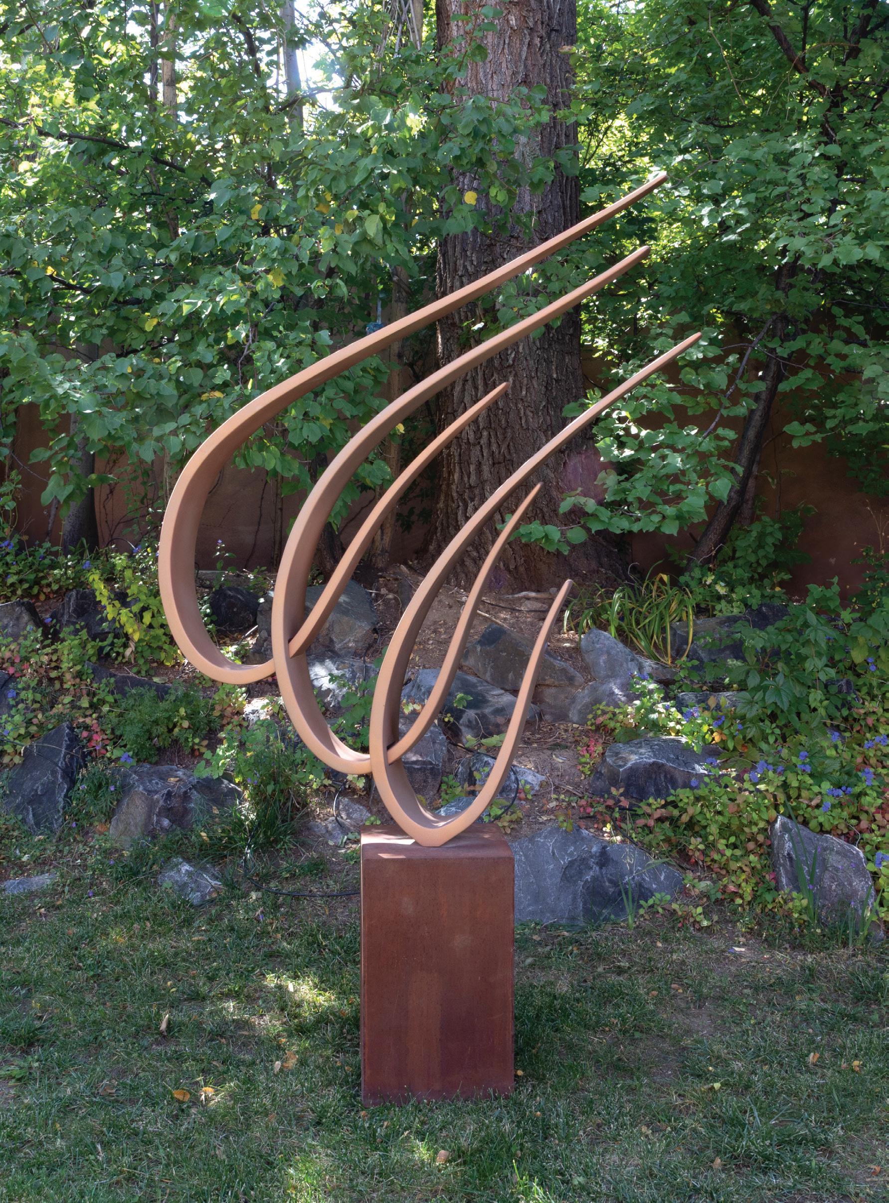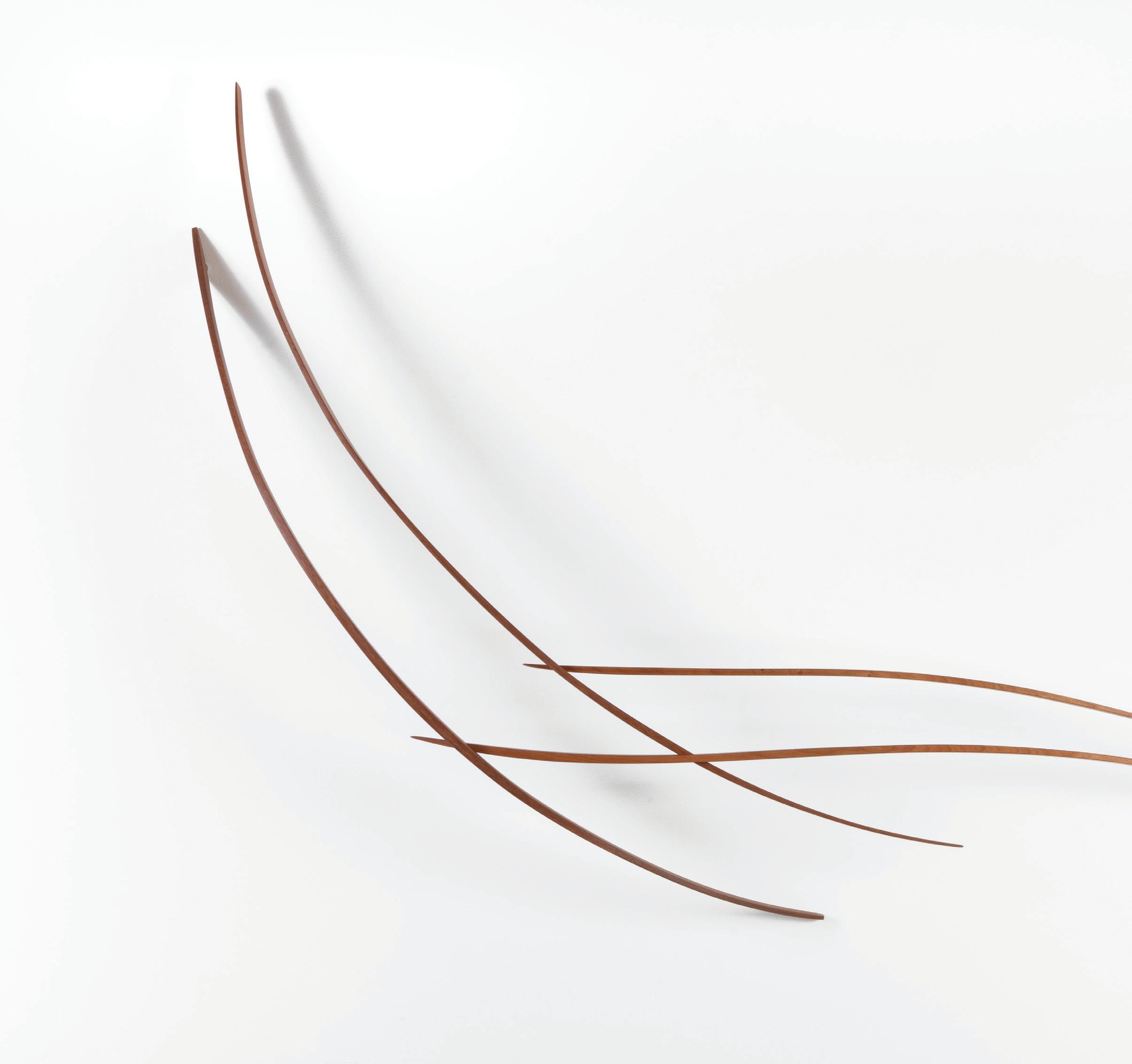 Clift’s horizontal and vertical forms resemble elements in the natural world – skeletal trees, dry grasses, or the profiles of hills. He spent his childhood in the desert near Santa Fe, New Mexico, a terrain that reduces nature’s life forms to rudimentary components, and one that continues to exert influence over his career. Although his inspiration derives from a tangible source – an object seen or emotion felt – the source is peripheral to a finished work. Even so, humans tend to anthropomorphize in order to establish kinship with the object of their attention. This instinctual urge is irrelevant to Clift’s sculptures, which embody a highly purified sense of beauty to reflect the essential aspects of outside realities. The aesthetic autonomy of his sculpture allows a piece to command the space on its own terms, initiating a direct alliance with the viewer. Additionally, his titles are factual rather than descriptive, such as Two Resting Forms and Four Pieces Waving, which serves to reinforce their autonomy.