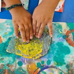 These workshops are collaboratively designed by local ar tist educators, combining diverse skills to create a vibrant, ever changing program for students The course encourages experimentation with mixed media, aims to teach new skills, and fosters independent learners who can embark on their own creative journeys.