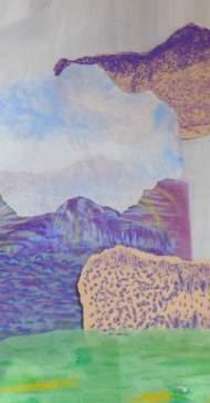 These workshops included colour theory in action, the use of pattern and texture through watercolour and acrylic painting. The sessions linked to the group’s South American geography focus Through painting, students investigated the different qualities of various papers. Sketchbook paper, handmade paper, rough cold pressed paper and smooth hot pressed paper all respond differently when water based pigments are added. Reflecting on the experimental work they were able to identify qualities that gave them their preferred effect for a final piece Using bold colours, unusual perspectives and busy patterns they create an atmosphere and sense of place