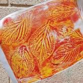 Mono printing techniques were used to develop surface pattern using fallen leaves.