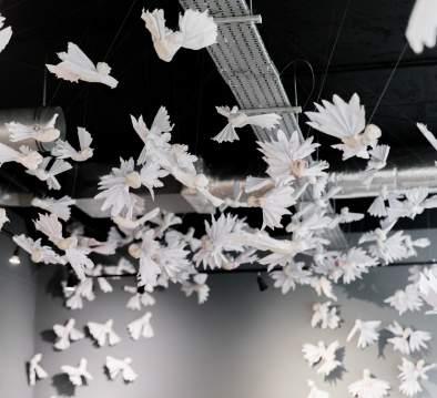 We created paper doves to mark the Liberation Day anniversary and contributed these to an installation in Capital House . L I B E R A T I O N 8 0