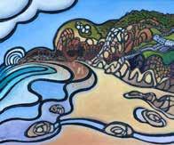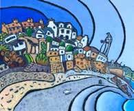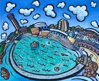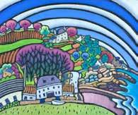 Rolls believes that the identity of any place depends not on the place, but on the observer. This series of oil paintings is conceived as one big artwork, made up of a number of small artworks of the same size, style and technique. Each one is essentially a patchwork of coloured islands on a black background. Each one is very simple and stylised. But each one represents a place to which we bring our own associations.
