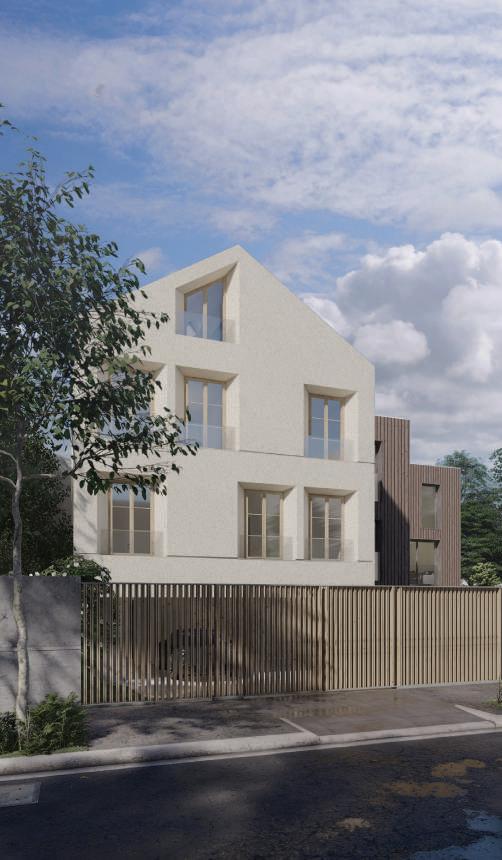 Located close to the Saint-Cloud golf course, the Wooden House will be built on a densely wooded plot of land, next to an existing house with typical western Parisian architecture. The aim of this project was to divide up the plot while requalifying the space in which the new project would be built, and preserving the existing vegetation. The neighboring plot features a multidwelling building with a 4-storey blind gable onto our plot. The challenge for this project was to conceal this facade while returning to the domestic scale of the single-family home with its garden.