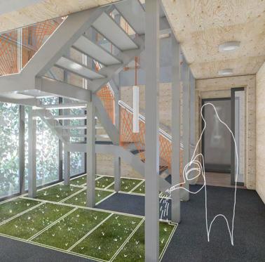 Our housing solution consists of apartment spaces, set up on abandoned sites, with a minimum of 32m2 for a studio apartment and maximum of 64m2 for a family of 5 with modular organisation of the functions to cater for the necessary special needs of the respective inhabitants while minimising the amount of space used to reduce energy consumption.
