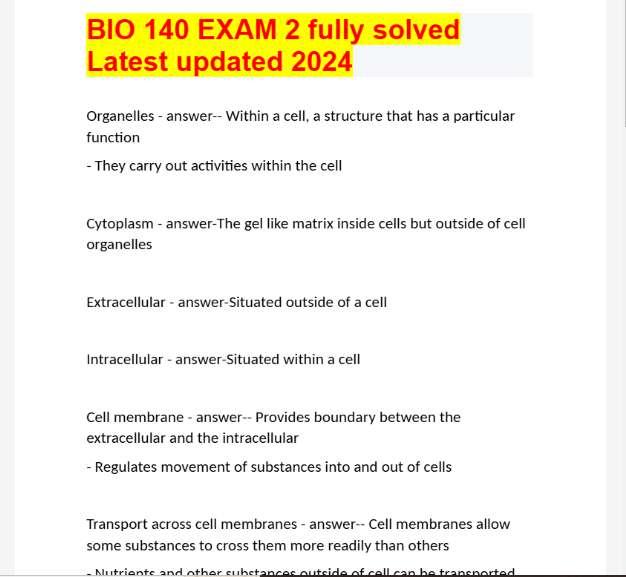 BIO 140 EXAM 2024 QUESTIONS WITH DETAILED ANSWERS LATEST UPDATE