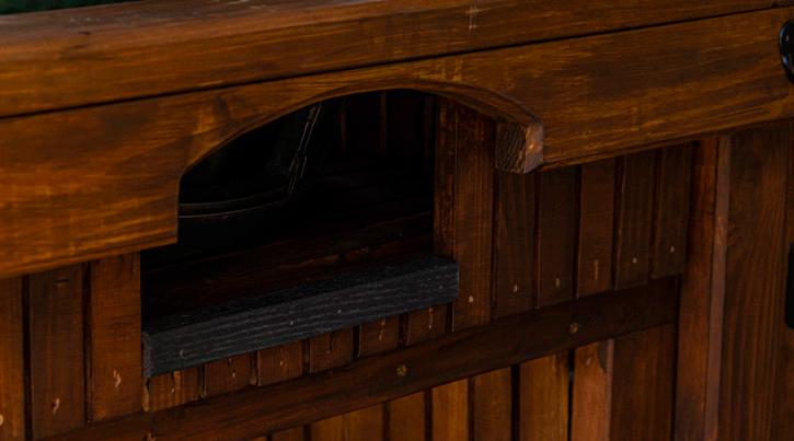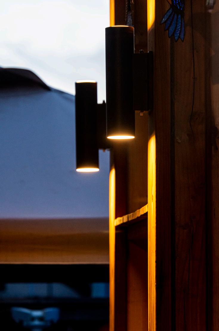 Created to split a backyard in two parts to isolate a future Japanese garden, this fence feature a simplistic design made out of redwood. The center part takes the theme of the Tori gate to symbolize the passage between two spaces. Some lights are installed in between the slats to make a lantern during night time.