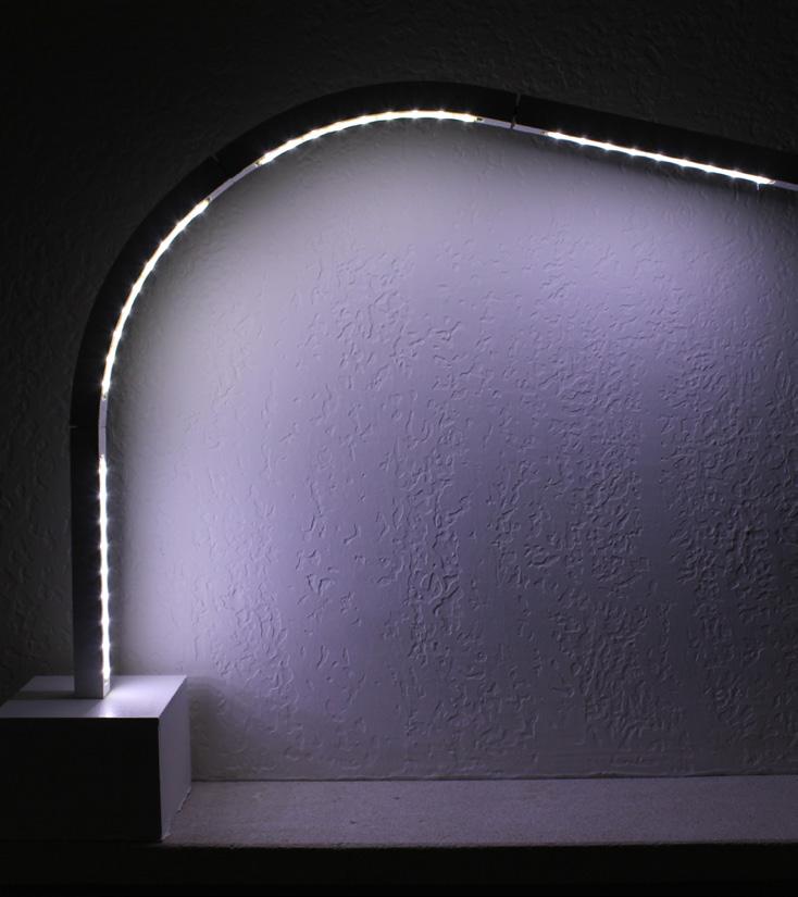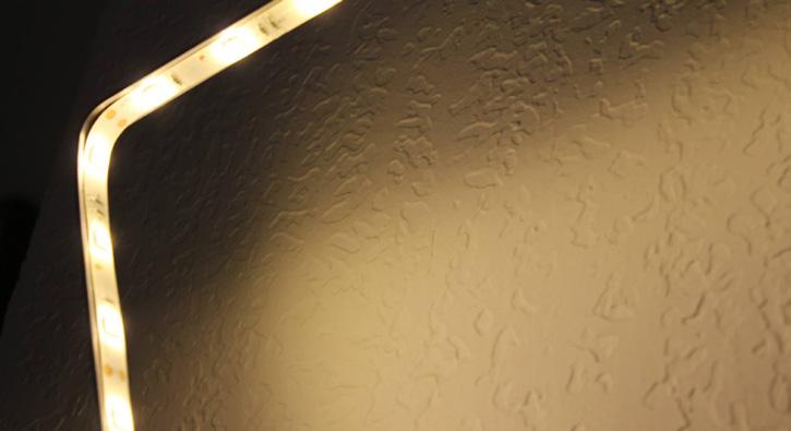 A subtle LED strip is wrapping the shelves to provide some accent lighting around the edges.