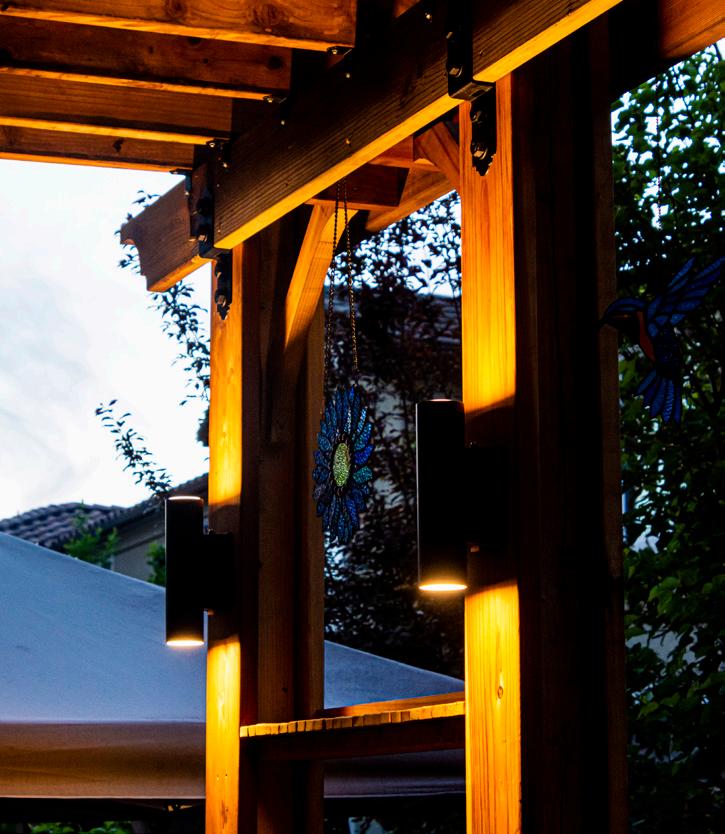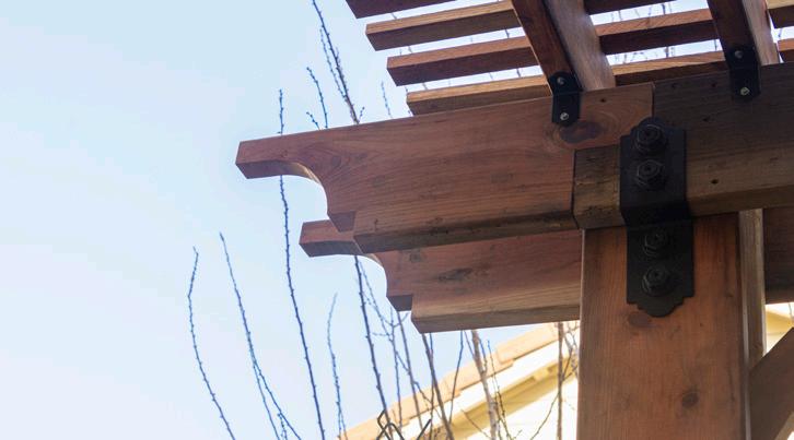 Providing shade for warm Californian afternoons near the Bay Area, this lattice design pergola features some benches providing additional seating and storage and some lighting. Some additional shelves are added to let the users to display plants and accessories.