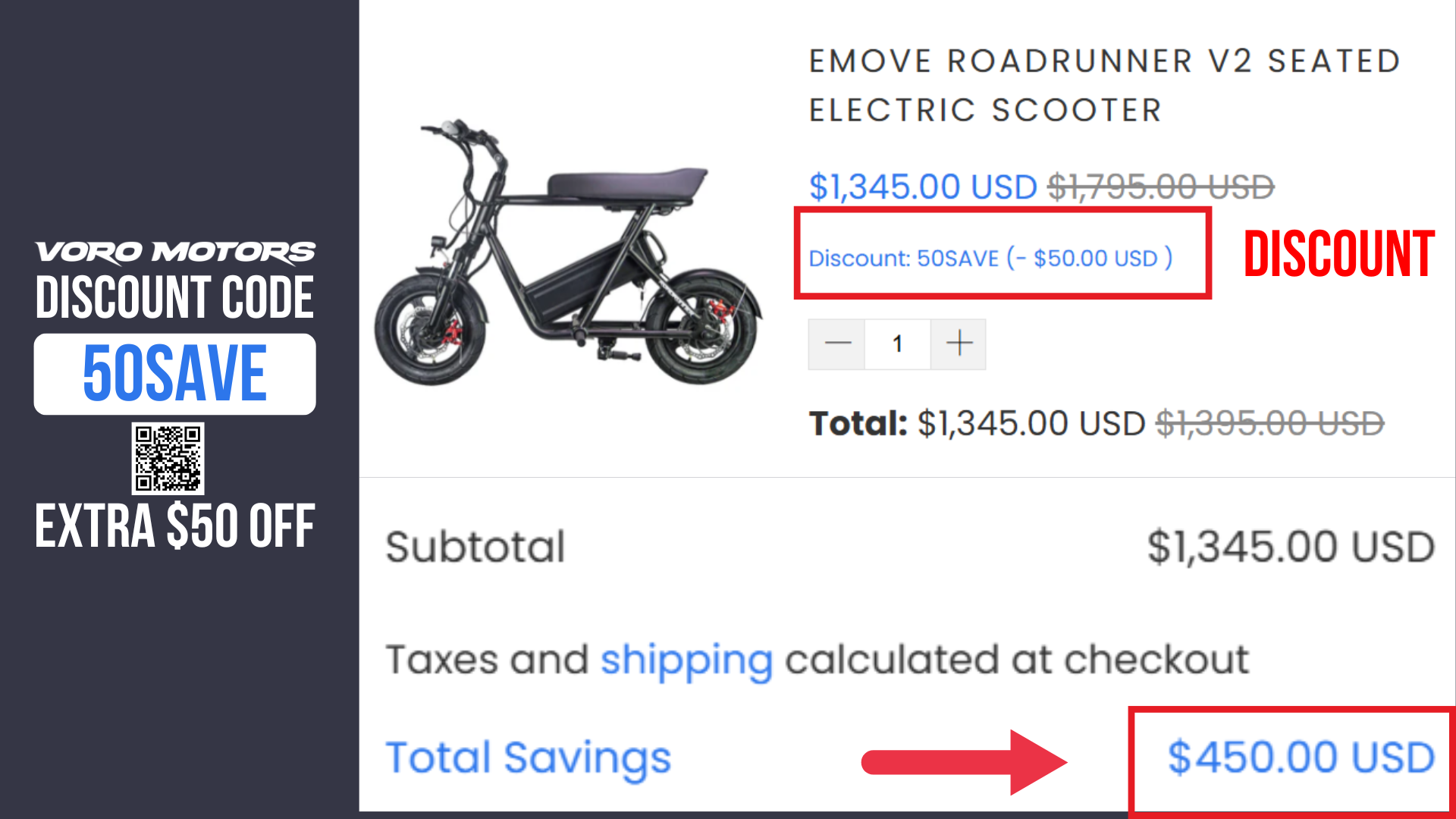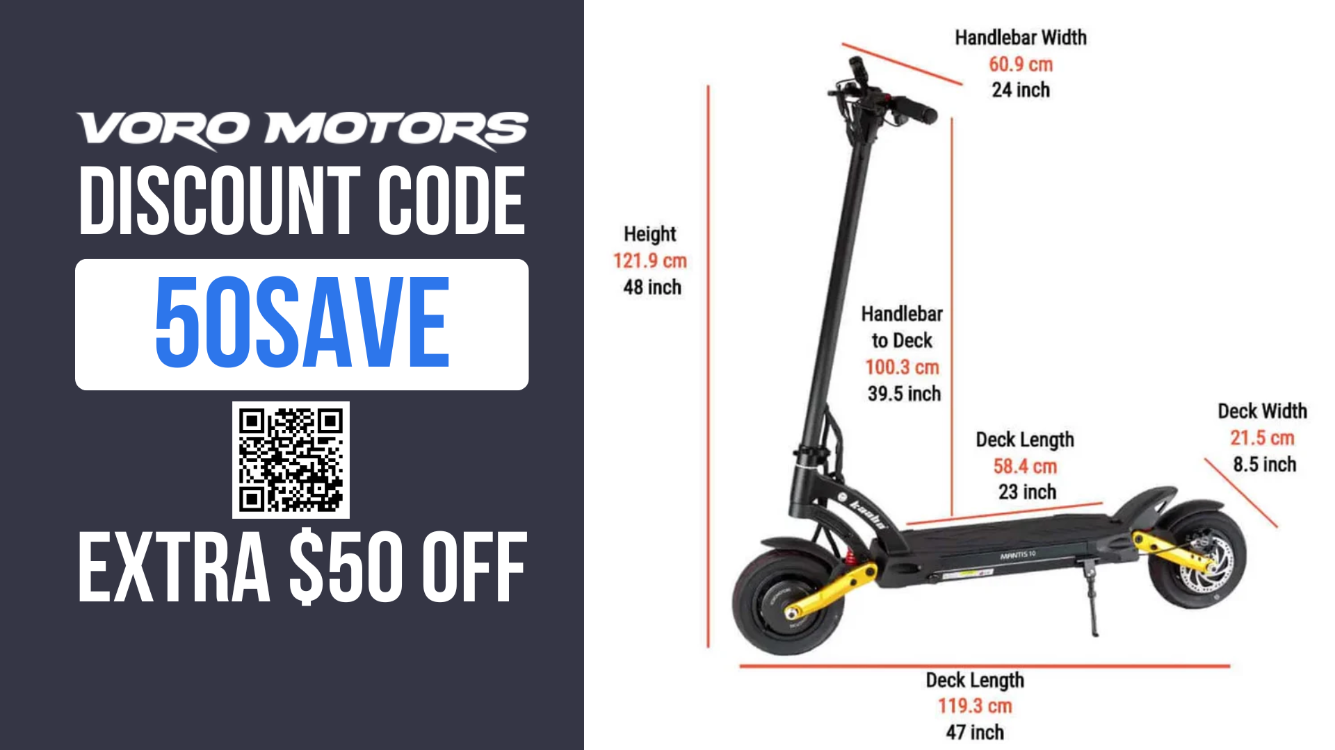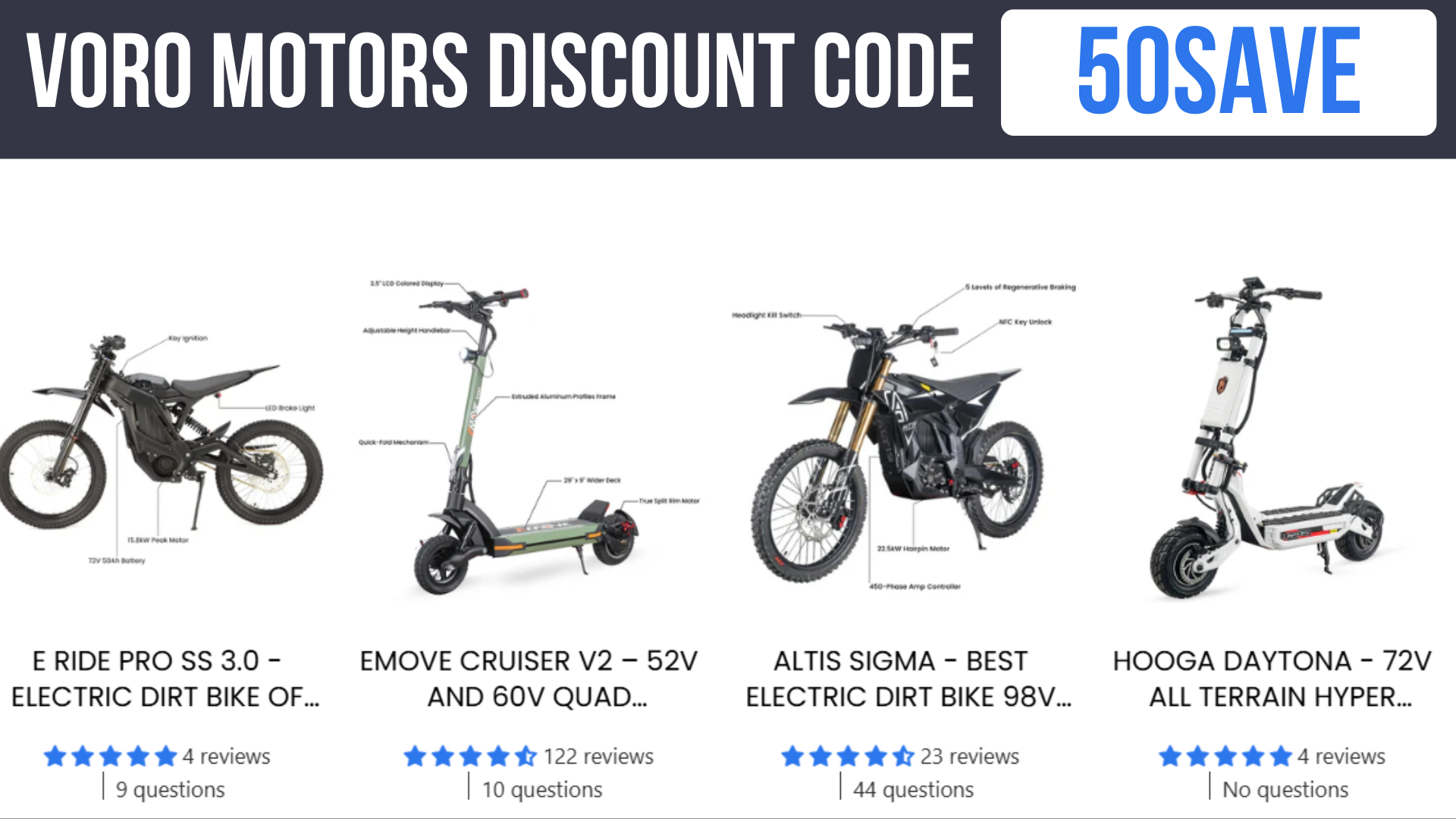 High-performance scooters are an investment, and every dollar counts. The beauty of Voromotors Discount Code 50SAVE is how much value it adds instantly: