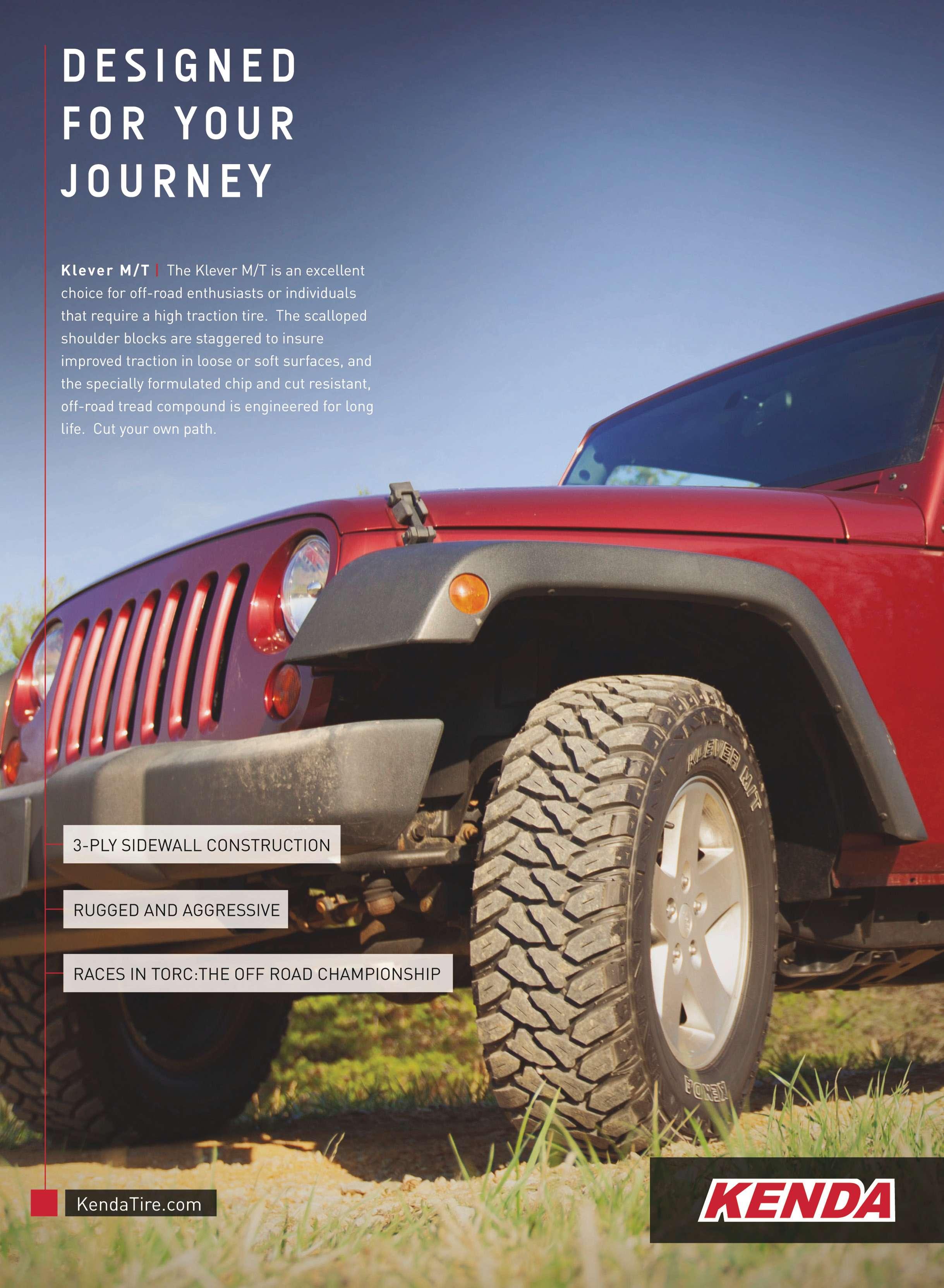 Te KO2 is the fourth generation of the KO, which was introduced in 1977. Te KO2 was used last year in the international Baja 1000 of-road race that takes place on Mexico’s Baja California Peninsula. Reim says the tire’s performance on the car that won the Baja Champion class “helped to prove the The KO2 will be released Nov. 1. toughness” of the KO2. Several sizes are new to the line: