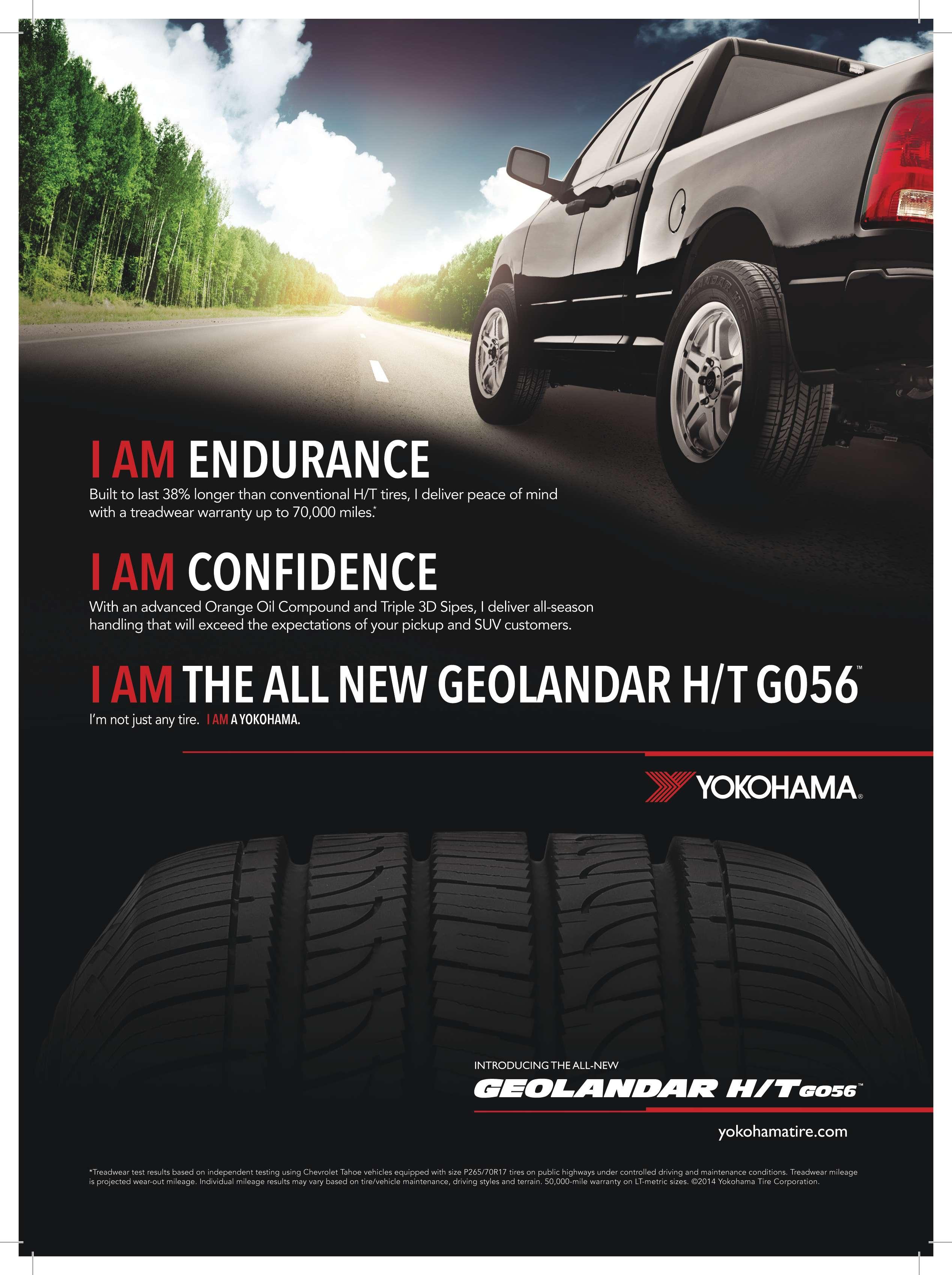 Yokohama Tire Corp.’s iceGuard iG52c tire is now available in 39 sizes. The iceGuard iG52c’s tread compound offers aggressive grip and confdent handling on both slick roads and dry pavement so drivers can feel assured in any winter situation. The iceGUARD iG52c features a triple-action compound that absorbs water and drains excess moisture for a more assured grip. Other highlights of the tire include an extra-wide center rib and large control blocks that maximize road contact for stability in wet, dry and icy conditions; and triple 3D sipes that enhance tread block rigidity for optimum stability while creating more biting edges for traction on snowy and icy roads. YOKOHAMA TIRE CORP. Quik-Link: (800) 687-1557, ext. 21174 www.mtdquiklink.com/21174
