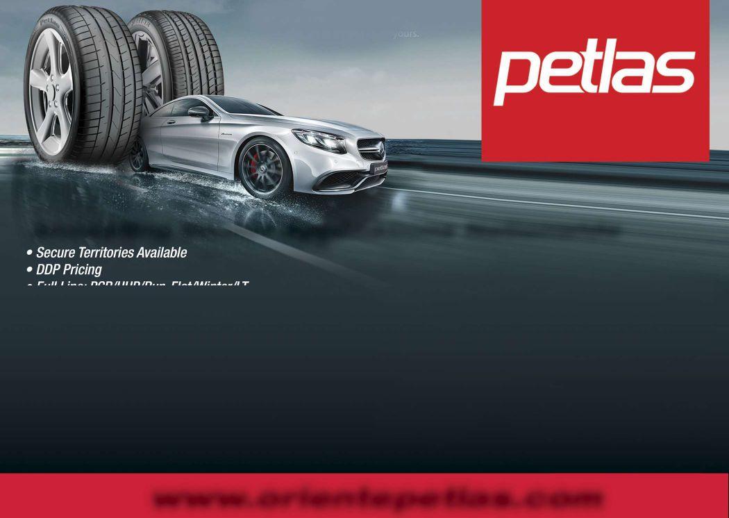 • Secure Territories Available • DDP Pricing • Full Line: PCR/UHP/Run-Flat/Winter/LT • Passenger, UHP, Light Trucks, Run-Flat and Snow Tires • Petlas has an ISO 9001 Quality System Assurance Certificate • Exports to nearly one hundred countries worldwide • Petlas Tires have passed all US DOT, European ECE, Inmetro, and CCC Certification • Global Production of 10 Million Units per Year • NO TARIFF / NO ANTIDUMPING / COUNTERVAILING • Industry Warranty