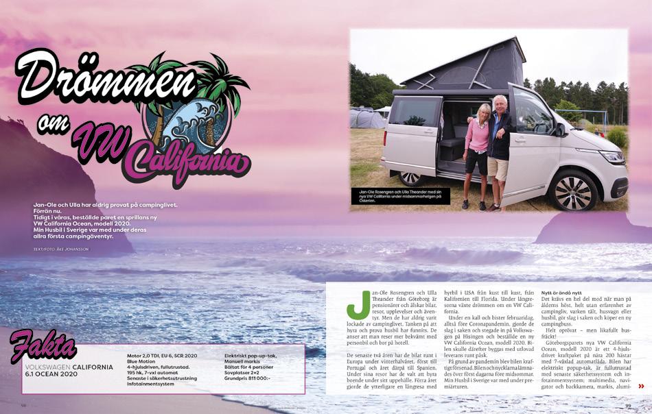 Jan-Ole och Ulla (som vi skrev om i nr 5/20) hade aldrig tidigare provat på husbil- och campinglivet, när de i februari 2020 beställde en fabriksny, fullt utrustad VW California Ocean. Bilen fanns inte tillgänglig för provkörning eller ens provsittning i bilhallen. Enbart katalogbeställning stod till buds, vilket inte avskräckte dem för att göra affär, vilket de nu i efterhand erkänner inte var någon toppenidé.