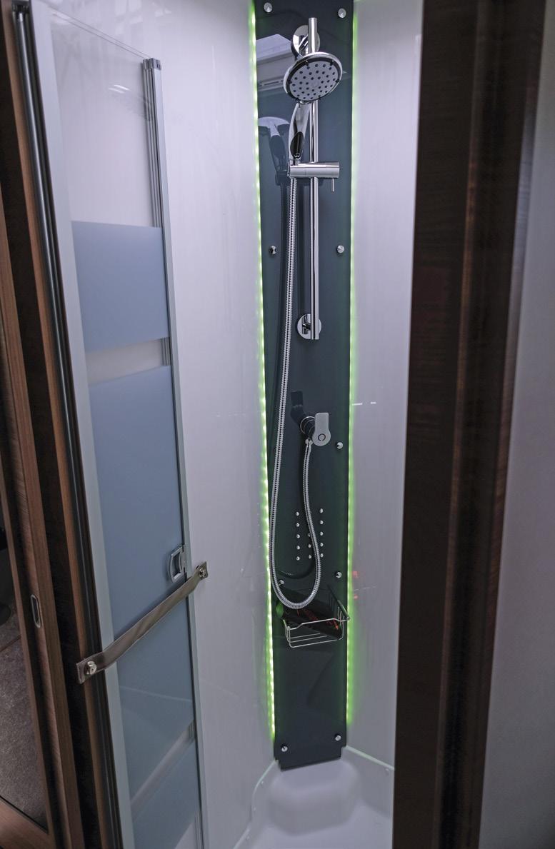 Interiören är snygg och elegant. Dusch med både färg och glans.