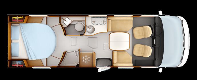 GRYM ATT KÖRA Utöver husbilens rikliga standardutrustning har göteborgsparet gjort några tillval utifrån sina önskemål och behov. Istället för Truma luftvärme har de Aldevärme Arctic Plus (vattenburen värme), AC i bodelen, solceller, elmanövrerat hydrauliskt stödbenssystem, dragkrok, mm. – Som husbilsägare är vi fortfarande nybörjare, men så sakteliga lär vi oss alltmer om bilen och hur camping- och husbilslivet och allt annat fungerar, säger göteborgsparet som är supernöjda med bilen och hela affärsuppgörelsen. – Bilen är topputrustad, snygg och elegant, både in- och utvändigt. Och otroligt grym att köra, säger Jan-Ole som numera sitter som en kung bakom husbilsratten.