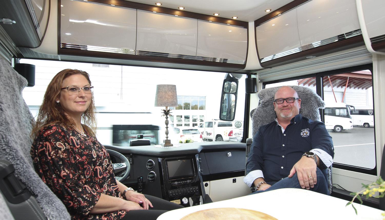 Paret Patrik och Monica Gustavsson på Caravanhallen i Södertälje tog för ett år sedan beslutet att sälja hela sitt bohag, sitt hus och flytta in i en husbil. Eller rättare sagt i två husbilar. En jättestor och en aningen mindre.