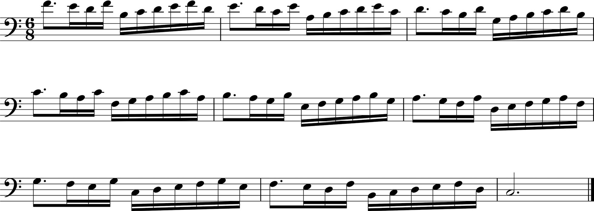 Exercise 6 is constructed using a descending third that immediately jumps up to the sixth and then descends back down using the scale tones, so the sequence is 3-1-6-5-4-3. It’s yet another beautiful melodic pattern to tie your fingers in knots for a while.