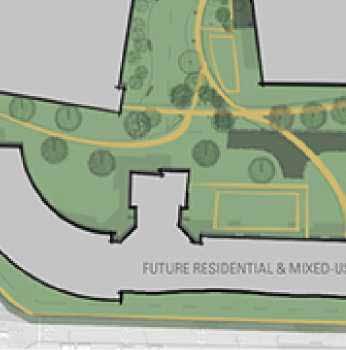 Site studied as part of an entire campus from the perspective of a visitor.