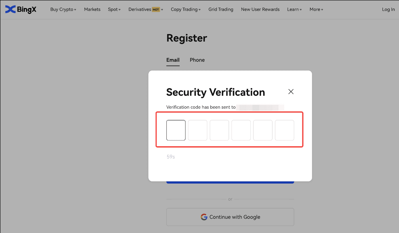 Once you click "Register," check your inbox for the verification code to finalize the setup.
