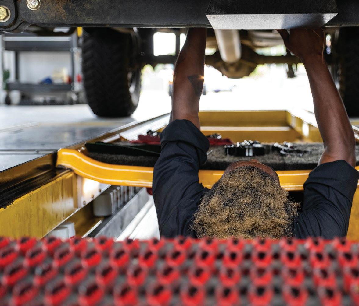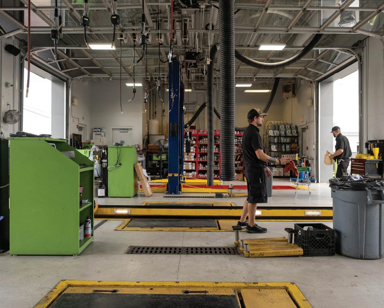 The conversion included the addition of a twopost lift. Perkins said they weren’t sure if it would fit through the bay doors until it was delivered.
