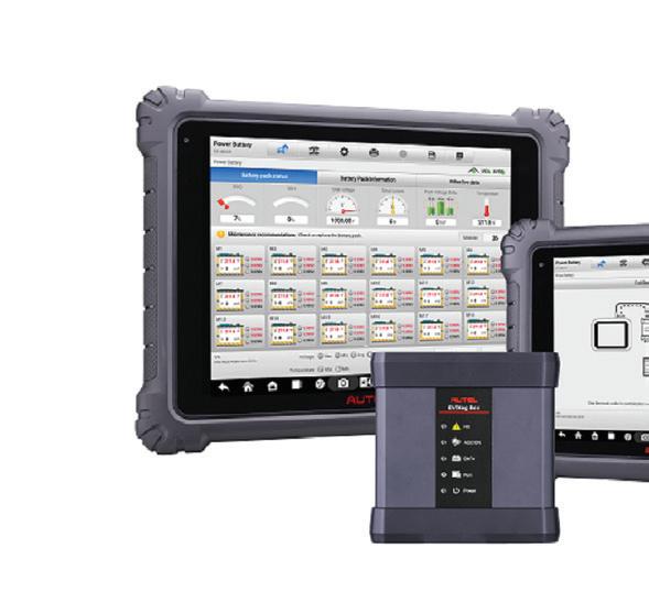 Tire dealers can purchase MS Ultra, MS909 EV tablets or Autel’s EV Diagnostic Upgrade Kit for their existing MSUltra, MS919 or MS909 tablets “to have complete, advanced diagnostic capability for gas, diesel, electric and hybrid vehicles.” e new tablets and EV Diagnostic Upgrade Kit include adaptors that enable direct battery analysis “if the standard communication network is either unavailable on the vehicle or is not functioning.”