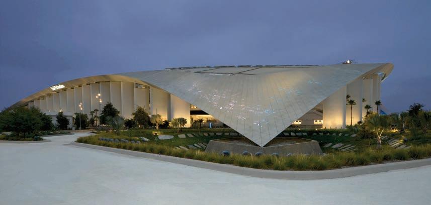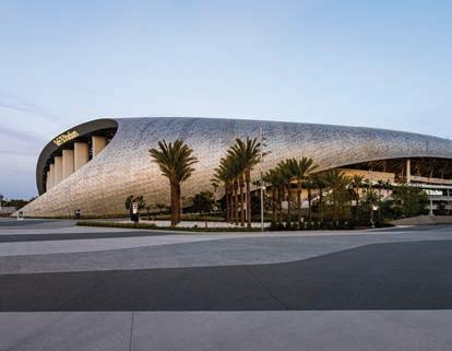 19.5-acre canopy. It covers the 70,000 seat capacity arena, a 6,000-seat performance venue, and the 2.5acre American Airlines Plaza, all nestled 100 feet into the ground due to the field’s proximity to Los Angeles International Airport, three miles away.