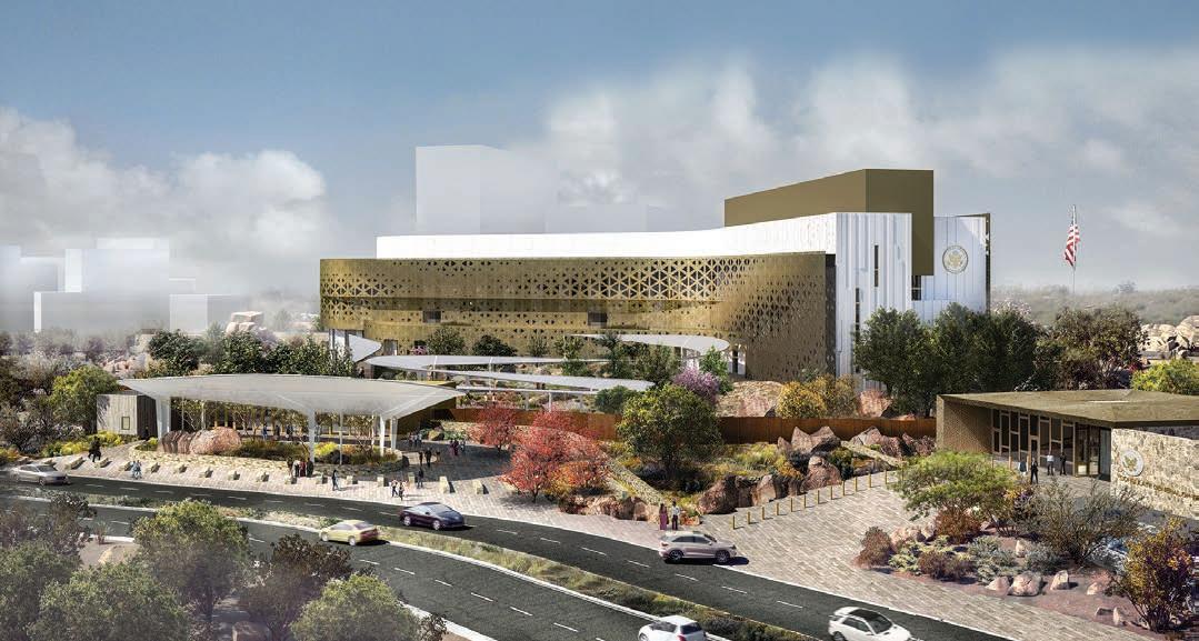 Located on an irregular shaped parcel of land originally planned for a high-rise residential development, the U.S. Consulate General in Hermosillo, Sonora, Mexico, had to be carefully designed to accommodate the residential neighborhood it is surrounded by on three sides, as well as honor the culture and community of the host city.