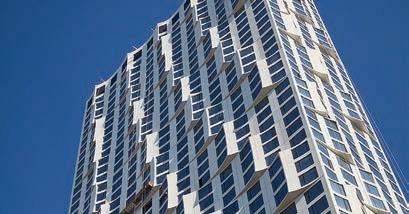 Over an 18-month period, 1,205 precast concrete panels, each measuring approximately 260 sq. ft. were produced. They were made from white cement and sandblasted during production to ring out the gray color of the calcite-based aggregates. The production process included the factory installation of 1,794 8-ft.-high aluminum frame windows manufactured in Italy and shipped to the BPDL plant in Alma, Québec for installation.