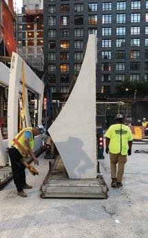 The precast panels are split between two categories: the 22,000-lb. scalloped panels and the 11,000-lb flat panels. The façade panels are also designed to support a live load, which is a first for the architecture, engineering, and construction industry, according to Walker.