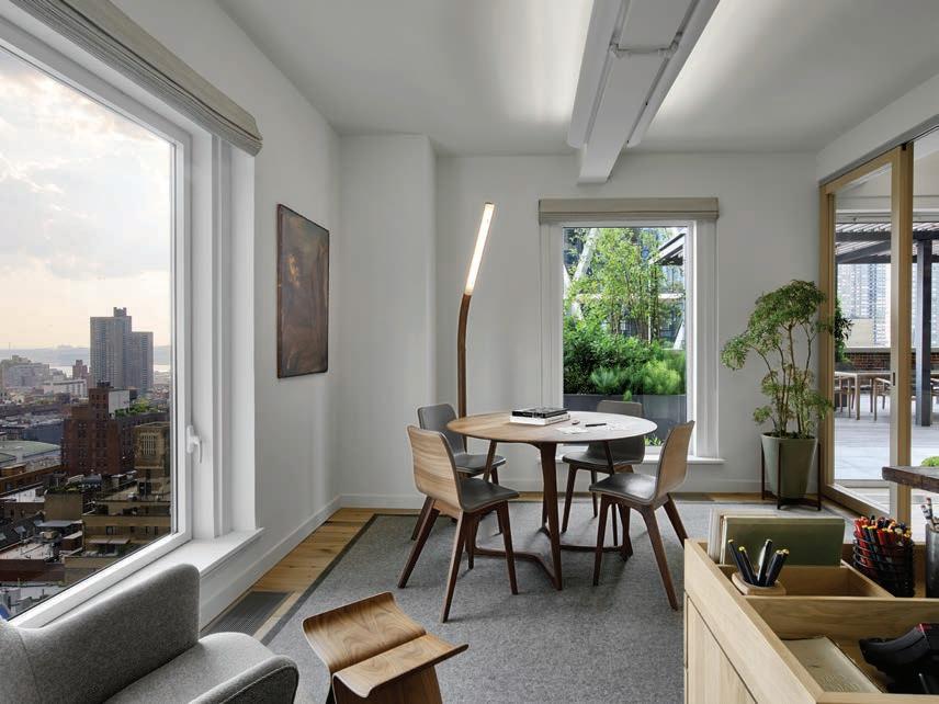 COOKFOX’s Manhattan WELL Platinum-certified headquarters incorporates natural materials and patterns, plantings, daylighting and lighting to support circadian rhythms, high-quality air filtration, zoned temperature control and more. This place of refuge in COOKFOX’s offices offers daylighting, views, greenery and a place for focus work in a safe, comfortable setting.