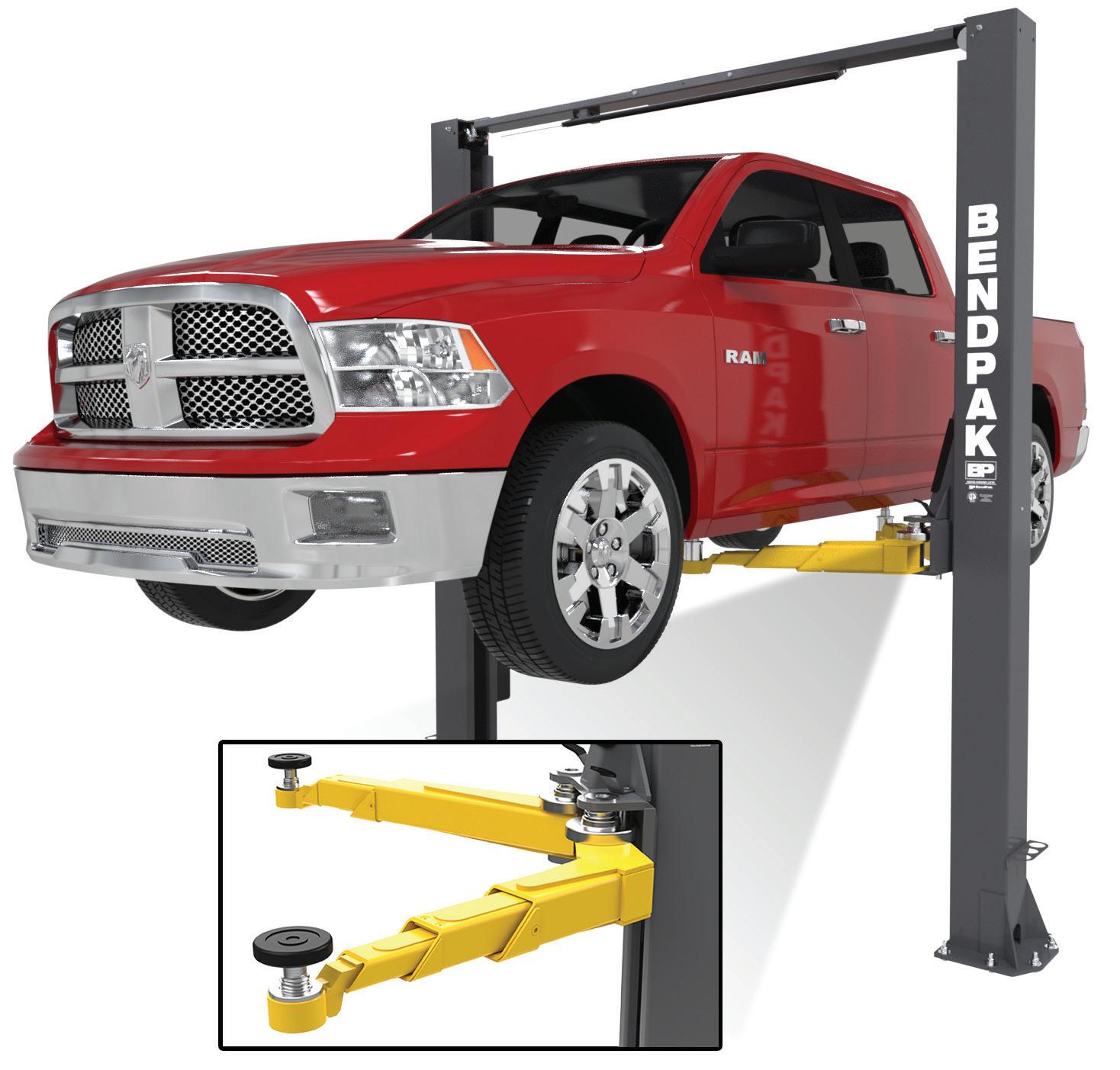 The all-new BendPak 10AP two-post lift features a revolutionary design that factors the best qualities of today’s two-post lift types into a completely new concept in car lift engineering. What you get is a 10,000 lb. capacity lift that has been designed for extreme use, high loads, enhanced safety and efficiency.