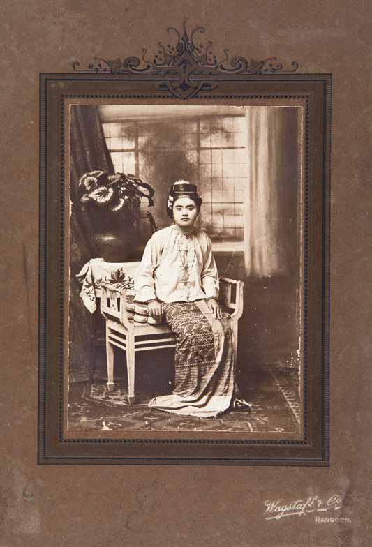 Though affected by the Second World War and the Great Depression, during the first half of the 20th century, the notion of being modern, fashionable and cosmopolitan remained important in major cities and towns of colonial Burma. Such ideas were often expressed in photographs taken at that time. Increasing local patronage of photographic studios records how ideas concerning female beauty and fashion changed during this period. In hairstyles, the low and flat hair bun was transformed into the high cylindrical form, sculpted up with extra tresses of hair. In dress, the cylindrical tube skirts and loosepatterned blouses fastening either at the front or the side were more widely adopted.