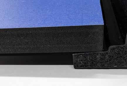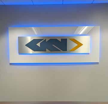 large canvases with a 55-foot inspirational phrase mural. The blue and grey