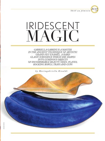 magic GABRIELLA GABRINI IS A MASTER IN THE ANCIENT TECHNIQUE OF ARTISTIC GRAND FEU ENAMEL. A HARD GLASSY SUBSTANCE WHICH SHE sHAPES INTO LUMINOUS OBJECTS OF INCOMPARABLE BEAUTY: VASES, PLATES, ROCKING BOWLS, TRAYS AND CUPS