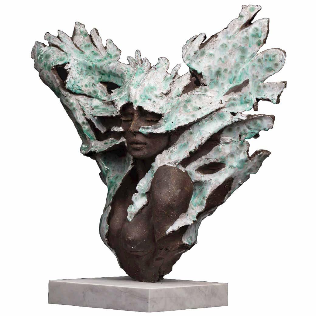 U LOTNA, 2022 ceramika, kamień, 70 cm x 66 cm x 30 cm Jacek Opała, artysta urodzony w 1970 roku w Bolesławcu na Dolnym Śląsku. Zaczął rzeźbić w glinie w 2009 roku. Jego własne prace łączą harmonię idealistycznej formy z kombinacją zdobień, kolorów, dodatków czy zniekształceń. Próbuje zamknąć w nich emocje i atmosferę tajemniczości. Inter pretacje i odgadywanie pozostawia jednak odbiorcy. Jego prace były wystawiane w wielu galeriach i miejscach w Polsce i za granicą.