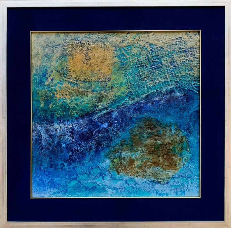 olej, akryl, szlagmetal, płótno 100 cm x 100 cm