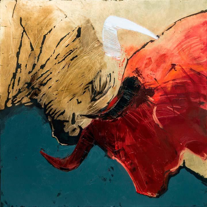 olej, akryl, szlagmetal, płótno 80 cm x 80 cm