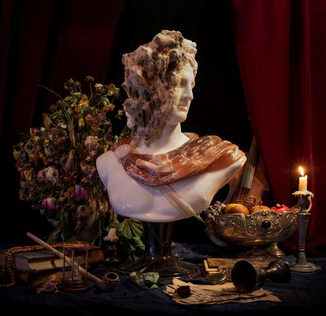 Oil on canvas, gesso, pastel crayon, stone, iron, copper 60x72cm