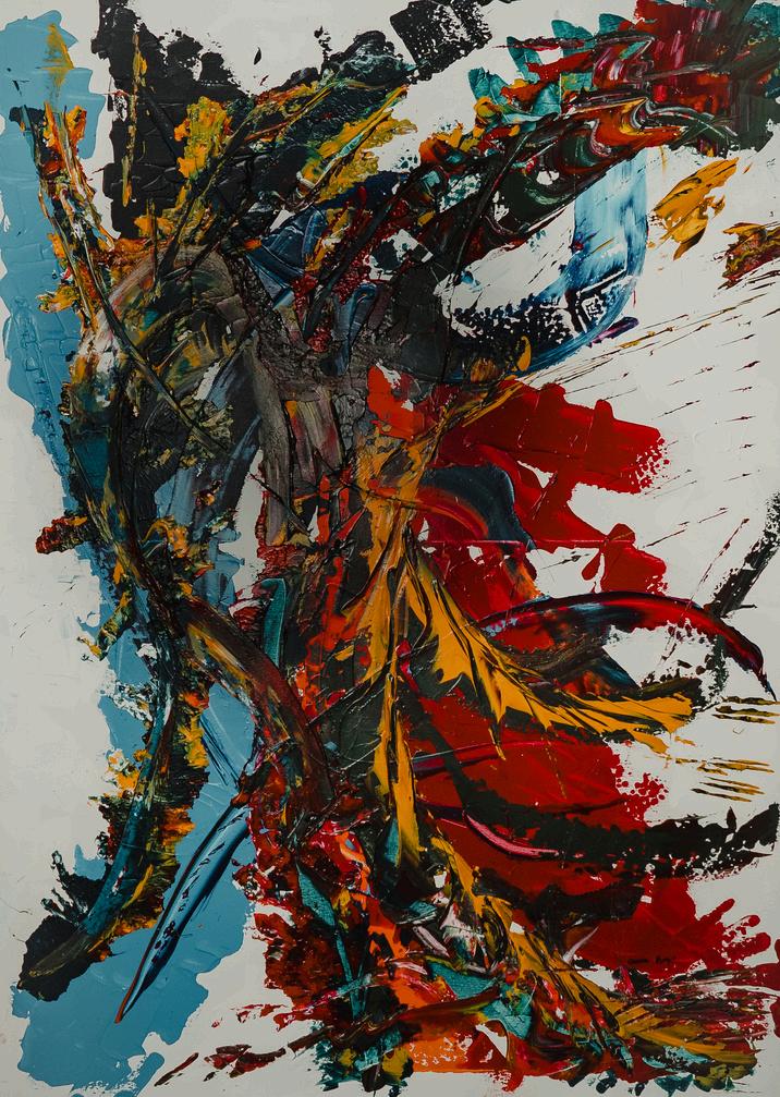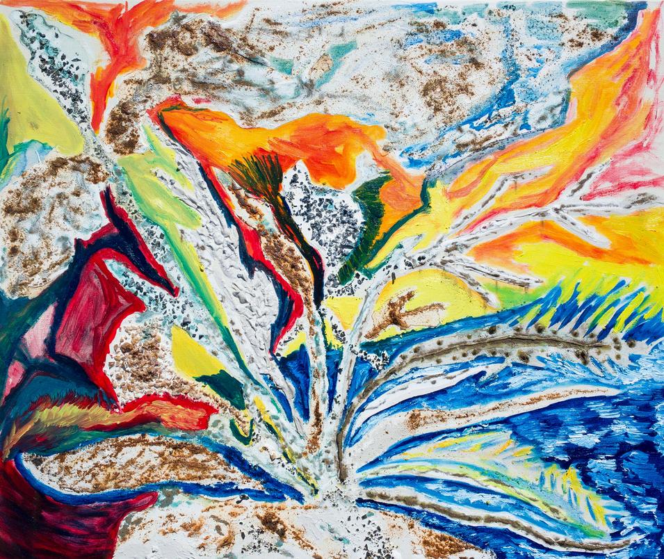 Mixed media, acrylic and oil paints on black canvas 80X100cm