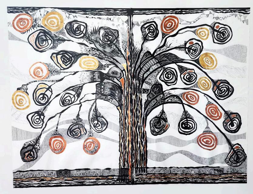 Acrylic, Gold & Silver leaf and Epoxy 122x91.5cm