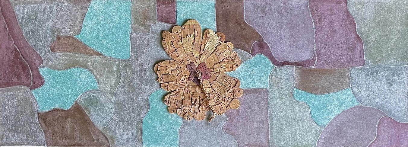 Mista/ recycled corks, Chianti wines, vynil and Alcantara fabric on wood 30X82cm