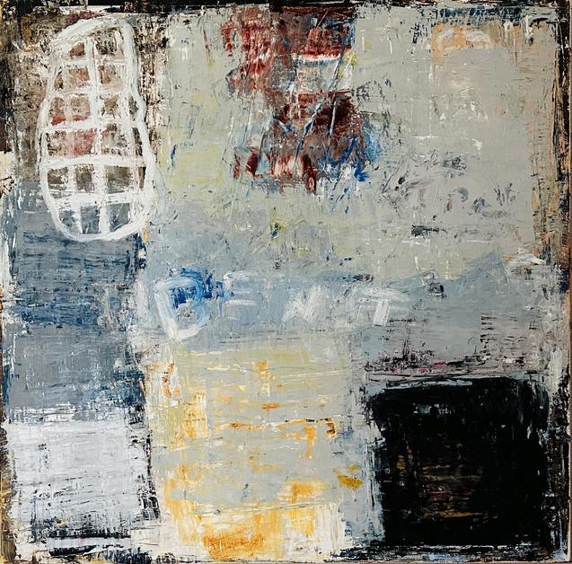 Mixed media on board : sand, modeling paste, pigment, foil,gesso, ink, acrylic & wax 121.92x121.92cm