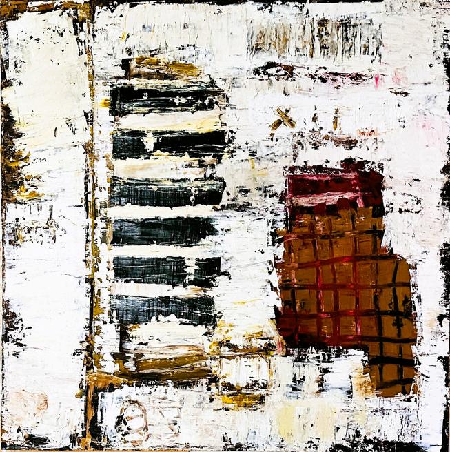 Mixed media on board : sand, modeling paste, pigment, foil,gesso, ink, acrylic & wax