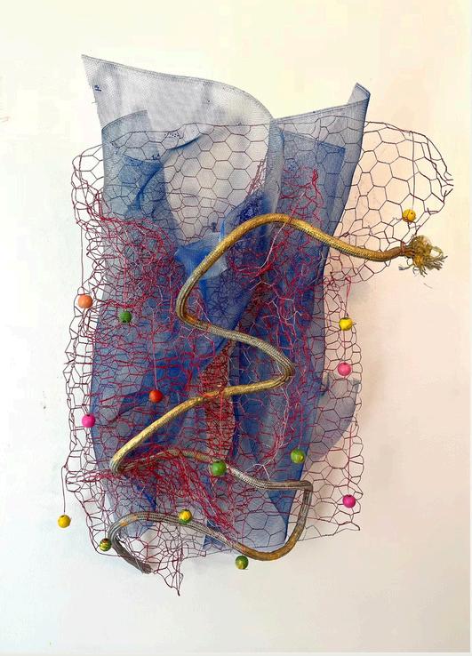 TuesdayMorningLoveSong Wire mesh; cable, wood 74x54cm