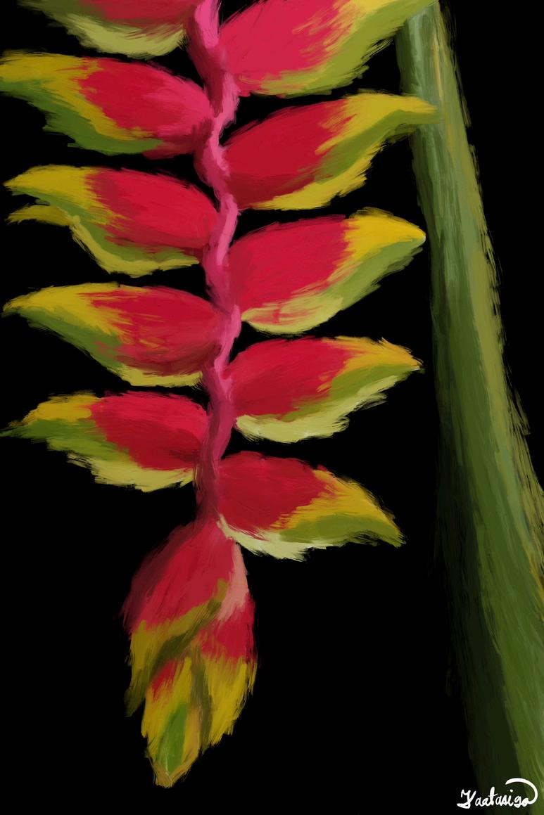 Fa’atasiga’s paintings are infused with a sense of joy, warmth, and natural rhythm. From portraits to tropical blooms, each piece is imbued with vibrant brushstrokes and luscious, vivid colour. Her signature incorporation of a dark background lends each painting a sense of internal radiance, with ginger flowers, hibiscus and anthuriums appearing luminous, radiating light and colour. Fa’atasiga paints the beauty of nature in a way that transcends realism, capturing deep emotion – such as the joy felt when faced with a beautiful sunset or a blooming flower