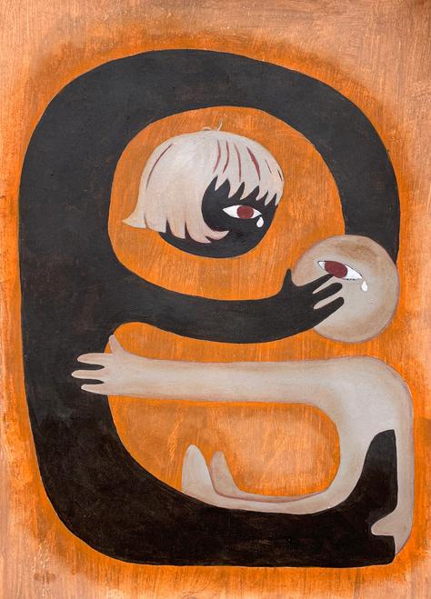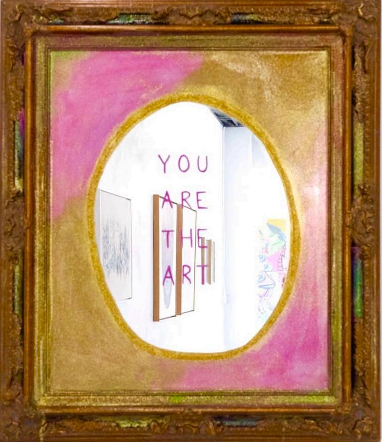 Brittany DeMeo, working under the pseudonym Spiritual Bitch, makes dynamic paintings that are instantly recognisable for their idiosyncratic visual language and layered imagery. Characterised by an instinctive and intuitive approach, DeMeo’s work contains within it a sense of fluidity and unmistakable energy. Patterns, symbols and forms are combined and juxtaposed, suggesting unexpected and enigmatic narratives. Referencing neoexpressionism and pop art, DeMeo’s practice is defined by vibrant colour, gestural mark-making, subjective experience, and deep emotion.