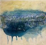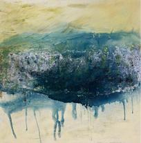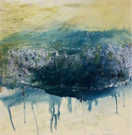Her piece Agate Mist reflects this approach with clarity and calm Inspired by the layered complexity of natural minerals and the subtle movement of air, the work unfolds in cool blue tones that shift gently across the canvas The delicate transitions and translucent veils of color evoke both the solidity of earth and the fleeting nature of mist. Agate Mist invites the viewer into a meditative encounter, where the boundaries between the tangible and the ephemeral softly dissolve.