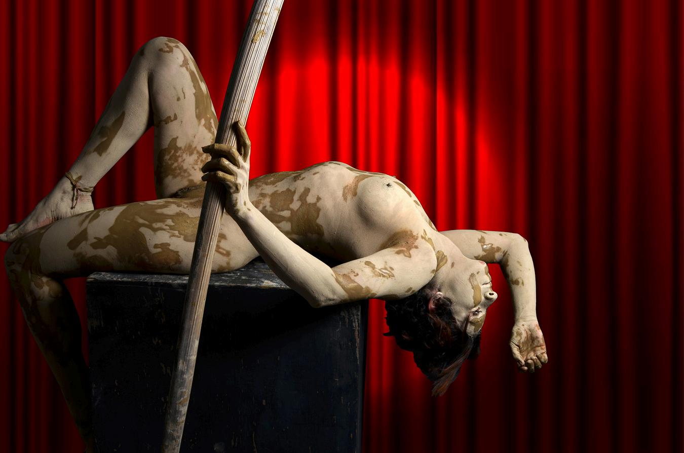 Carlos Abraham is a Lebanese Mexican artist with a background in architecture and photography. His work explores the beauty, balance, and refinement of the human form, often captured in classical poses and framed within architectural settings. In his most recent body of work, the male form is positioned within an almost theatrical context, figures are captured in front of heavy red drapes, accompanied by various symbolic objects. Within these tableaux, the human form is imbued with a sculptural quality.